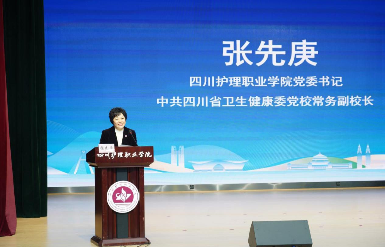 11月29日,以“产教融合聚合力、数智赋能促发展”为主题的现代智能大健康服务产教融合共同体、成都大健康产教联合体学术研讨会暨成渝双城经济圈现代护理职业教育联盟第五届研讨会在学院召开。省卫生健康委二级巡视员江涛、成都中医药大学校长曾芳、重庆护理职业学院党委书记郑泽莉,龙泉驿区教育局党组书记、局长曾涌,龙泉驿区卫健局党组书记、局长朱秀萍,学院党委书记张先庚、院长姚永萍等全体在校院领导出席,来自全国92家单位350余名代表参会。会议由学院副院长梁小利主持。